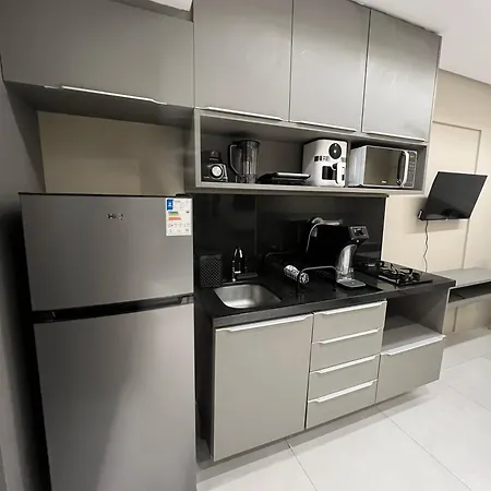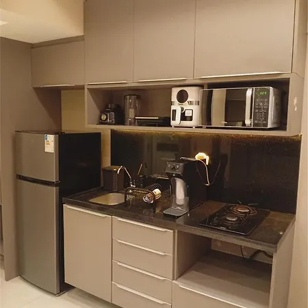 Tak, Apartamento Em Boa Viagem wyposażony jest w pełnowymiarową kuchnię i oferuje kuchenkę mikrofalową, czajnik elektryczny i lodówkę. - ❓
